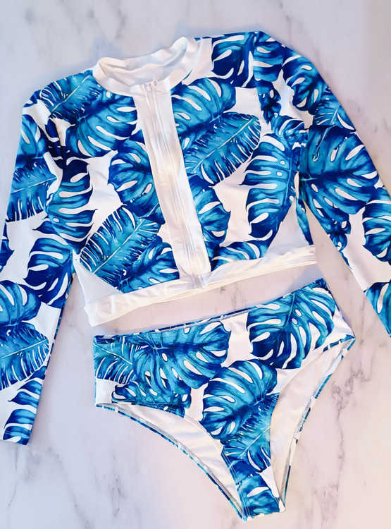 مایو دوتیکه زنانه استیندار برند SHEIN با طرح هاوایی