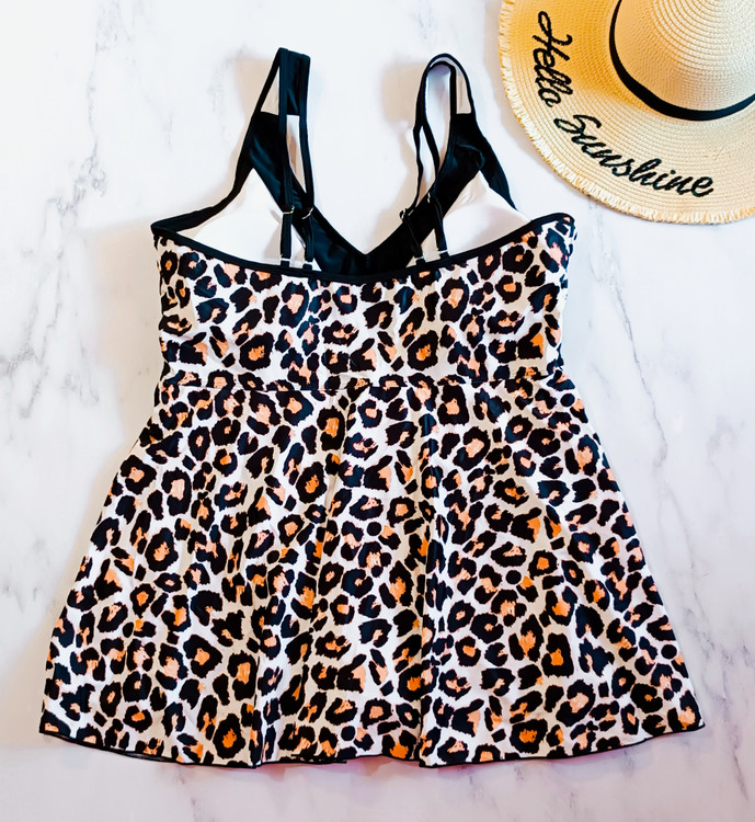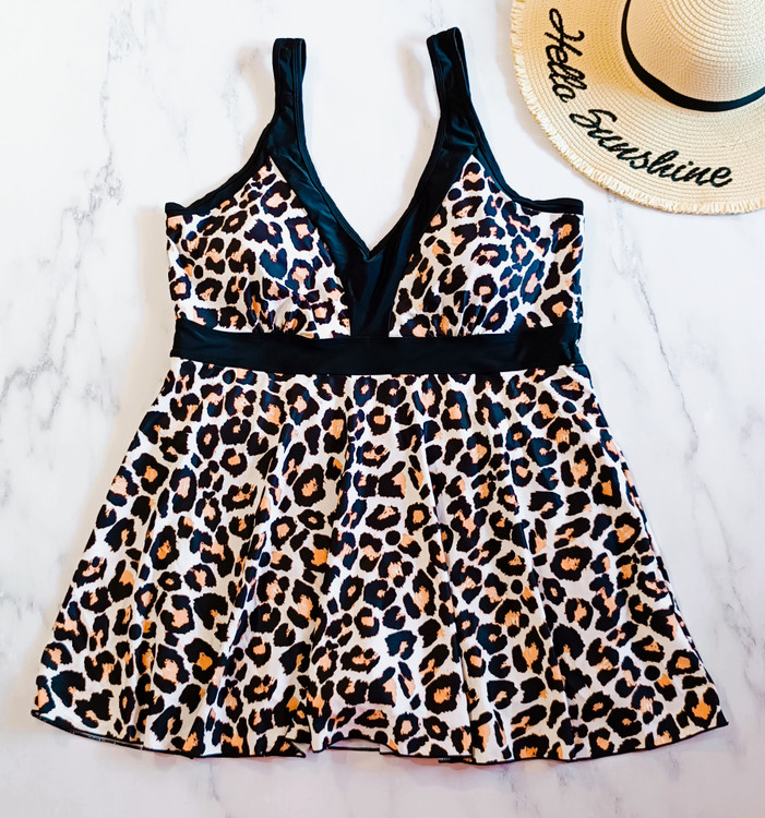 مایو دامندار زنانه با شورت پادار متصل طرح پلنگی سایز بزرگ
