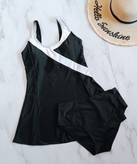 مایو دامندار زنانه دوتیکه با شورت فاق بلند مشکی رنگ