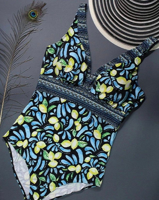 مایو شنا زنانه اسلیپ سایز بزرگ طرح لیمو