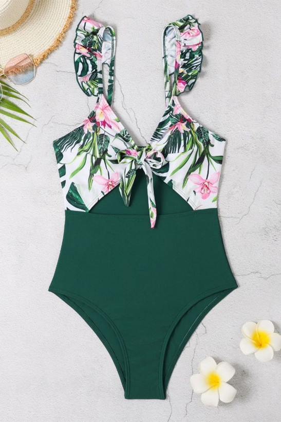 مایو شنا زنانه اسلیپ سبز رنگ هاوایی