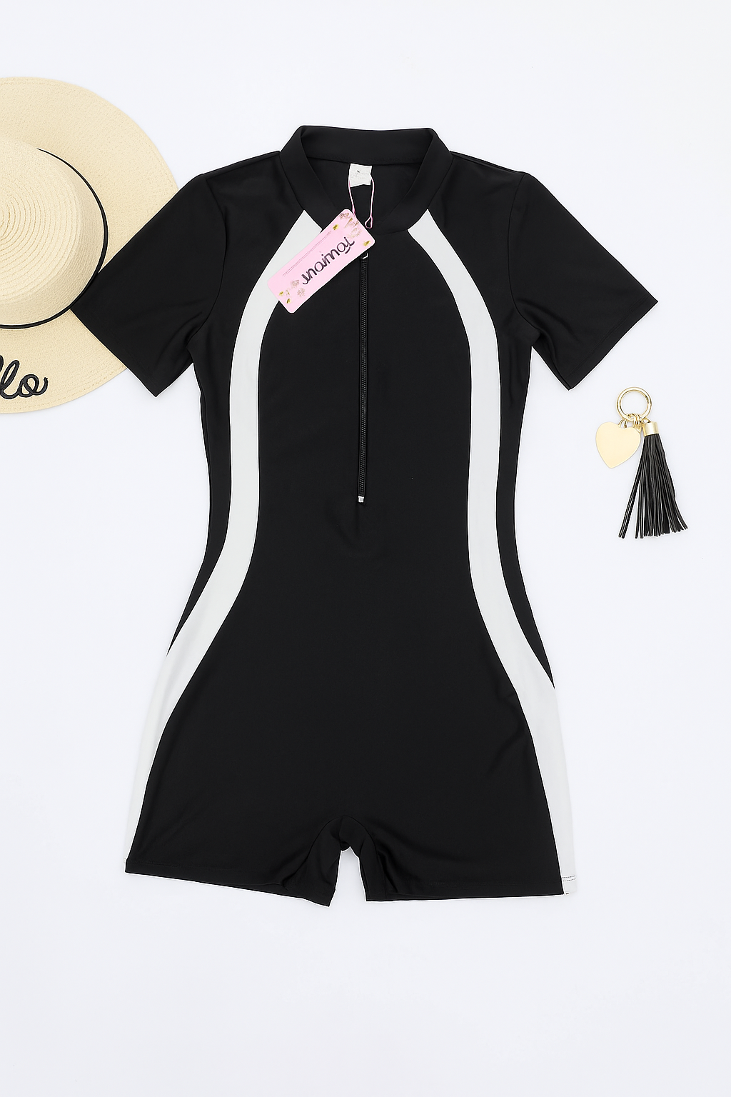 مایوشنازنانه نیمه پوشیده آستین کوتاه پادار مشکی